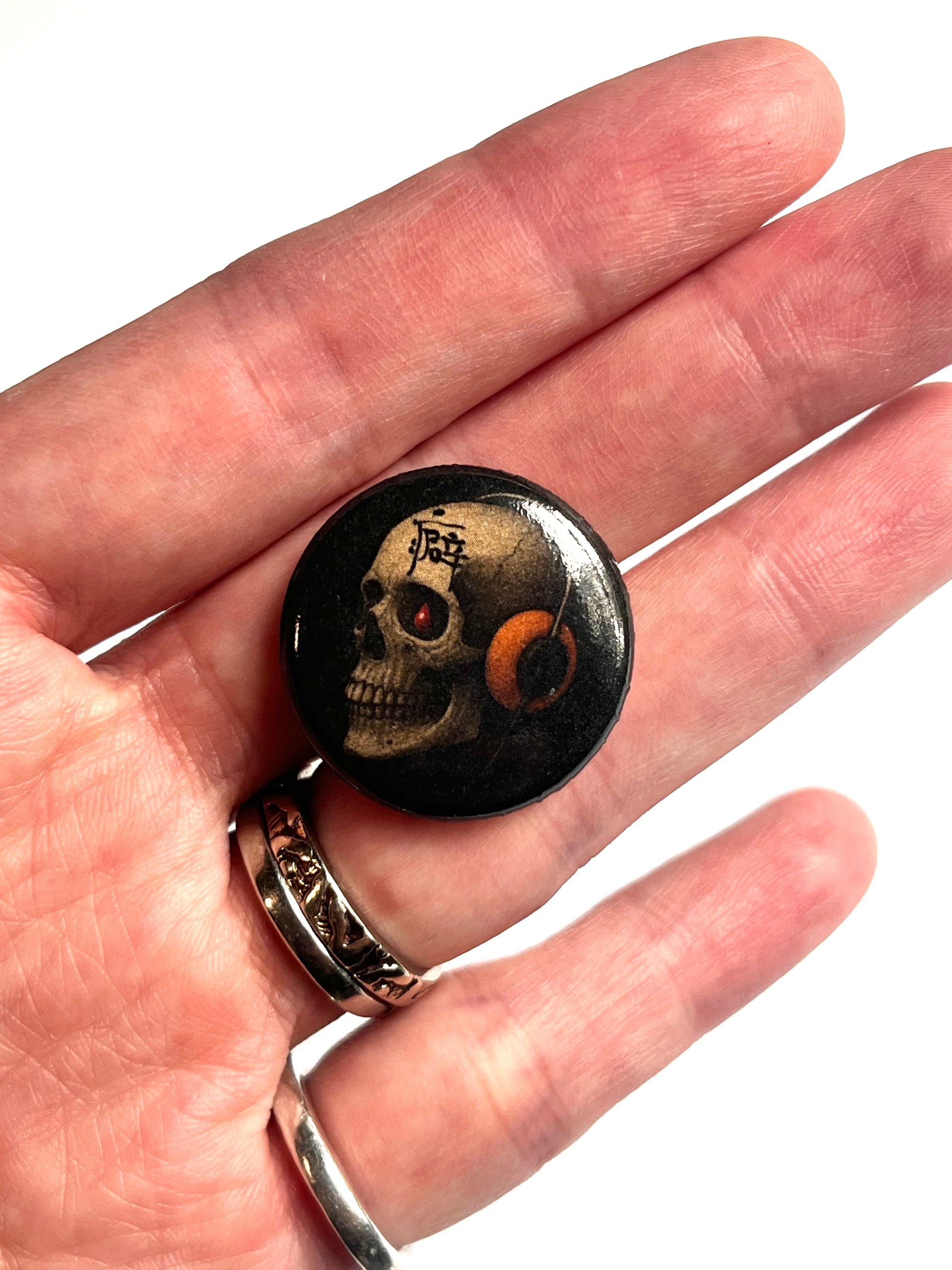 *後面別針可以自己調節旋轉到想要的位置,將別針反過來正面放在手掌,手指抓著別針後輕壓轉動即可!